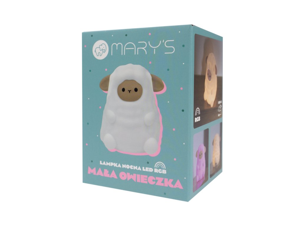 Mary's Noční LED lampička RGB - ovečkaObjevte kouzlo noční lampičky ve tvaru roztomilé ovečky, která zútulní každý dětský pokoj a zároveň zajistí klidný spánek i příjemné probouzení. Díky měkkému silikonovému povrchu a pevným materiálům ABS + HIPS je lampička bezpečná i pro nejmenší děti. Minimalistický bílý design se hodí do každého interiéru, od dětského pokoje až po moderní ložnici.Intuitivní dotykové ovládání umožňuje snadné přepínání mezi teplým bílým světlem a veselými barvami RGB.Ideální pro usínání, klidné chvíle hraní nebo pro vytvoření trochu větší útulnosti.Díky vestavěné baterii můžete lampičku snadno vzít s sebou kamkoli, dokonce i na přespání u kamarádů nebo na rodinné výlety.Kompaktní, lehká a vyrobená z bezpečných materiálů: Malá ovečka se hodí na každý noční stolek, psací stůl nebo do každého útulného koutku dětského pokoje.Nabíjení je rychlé a snadné přes USB-C, takže lampička je za pár hodin opět připravena k použití.Vlastnosti a výhody:Měkké a bezpečné – tělíčko se silikonovým povlakem tlumí nárazy, takže je lampička ideální do dětského pokoje.Ovládání nálady – od uklidňující bílé barvy 3000 K po veselé, barevné RGB barvy.Kompaktní a lehké – snadno se vejde na noční stolek nebo si můžete vzít lampičku s sebou na cesty.Snadné nabíjení – rychlý kabel USB-C vám zajistí plný výkon za pouhých několik hodin.Úspora energie – nízká spotřeba energie a inteligentní ovládání zajišťují dlouhou dobu svícení.Nechte se doprovázet „Malou ovečkou“ od MARY'S během večerní relaxace a barevných snů.Světlo:Barva / jas: nastavitelnéChromatičnost: Teplá bílá 3000 K + RGB (variabilní barvy)Zdroj světla:Zdroj světla: integrovaný LED (nevyměnitelný)Patice (objímka): zdroj světla je integrovanýOvládání: tlačítkové / dotykovéSvětelné efekty a senzory: Nastavení barvy světla (RGB)Typ: LED noční lampičkaVhodné využití: dětský pokoj, obývací pokojDoplňkové parametry