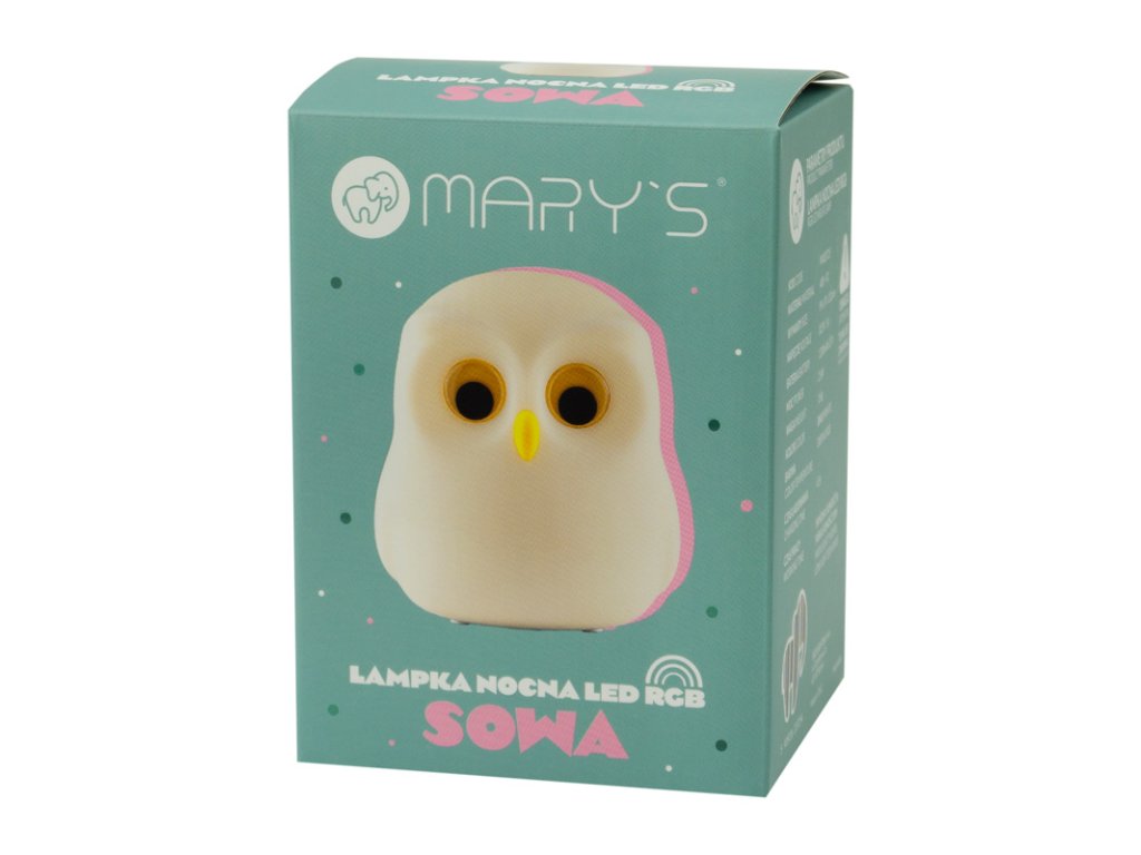 Mary's Noční LED lampička RGB - sovaPopis:Mary's Noční LED lampička sova je ideální pro ty, kteří hledají nejen funkční osvětlení, ale také okouzlující a stylový doplněk interiéru. Díky svým všestranným funkcím, dlouhé výdrži baterie a přátelskému designu je skvělou volbou pro děti i dospělé.Lampička se snadno ovládá pomocí intuitivních tlačítek a přiložený USB kabel umožňuje připojení k různým zdrojům napájení, jako je počítač, power banka nebo napájecí adaptér.Vlastnosti a výhody:Tvar a design:Lampička má rozkošný tvar sovy, který jí dodává na půvabu a díky němuž se líbí zejména dětem.Díky elegantní bílé barvě a odolným materiálům (ABS a PC) je lampa vhodná do různých stylů interiérů.Variabilní osvětlení:Teplá bílá barva světla 3000 K vytváří příjemnou a uvolňující atmosféru, která je ideální pro večerní odpočinek.RGB (měnící se barvy) umožňuje přizpůsobit osvětlení vaší náladě nebo použít lampu jako dekorativní prvek při různých příležitostech.Dlouhá provozní doba:Při vysokém jasu vydrží lampička svítit až 5 hodin, což je ideální pro intenzivní osvětlení během krátké doby.Při nízkém jasu je provozní doba až 200 hodin, což zajišťuje dlouhotrvající a jemné osvětlení po mnoho nocí bez nutnosti častého dobíjení.Snadné nabíjení:Doba nabíjení je 4,5 hodiny, takže může být lampička rychle připravena k dalšímu použití.Lampička je vybavena USB Kabelem, který umožňuje nabíjení z různých zdrojů energie, jako je počítač, powerbanka nebo síťový adaptér.Bezpečnost a pohodlí:Materiály použité při výrobě (ABS a PC) jsou bezpečné, odolné proti poškození a snadné na údržbu.Lampa je lehká a přenosná, což umožňuje její snadné přenášení a používání na různých místech.Světlo:Barva / jas: nastavitelnéChromatičnost: Teplá bílá 3000 K + RGB (variabilní barvy)Zdroj světla:Zdroj světla: integrovaný LED (nevyměnitelný)Patice (objímka): zdroj světla je integrovanýOvládání: tlačítkovéSvětelné efekty a senzory: Nastavení barvy světla (RGB), StmíváníTyp: lampičkaVhodné využití: dětský pokojDoplňkové parametry