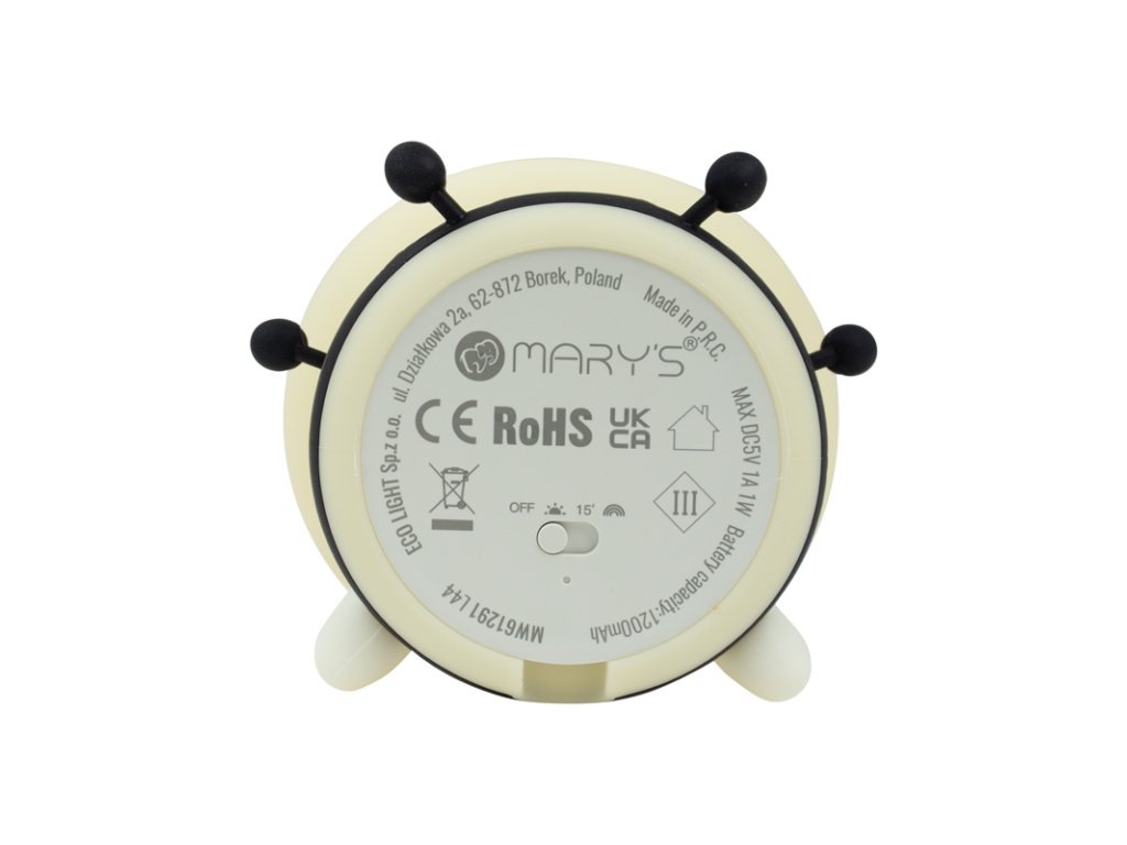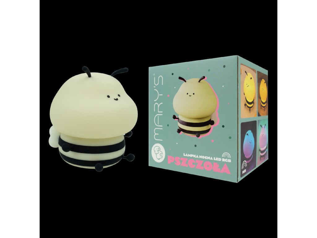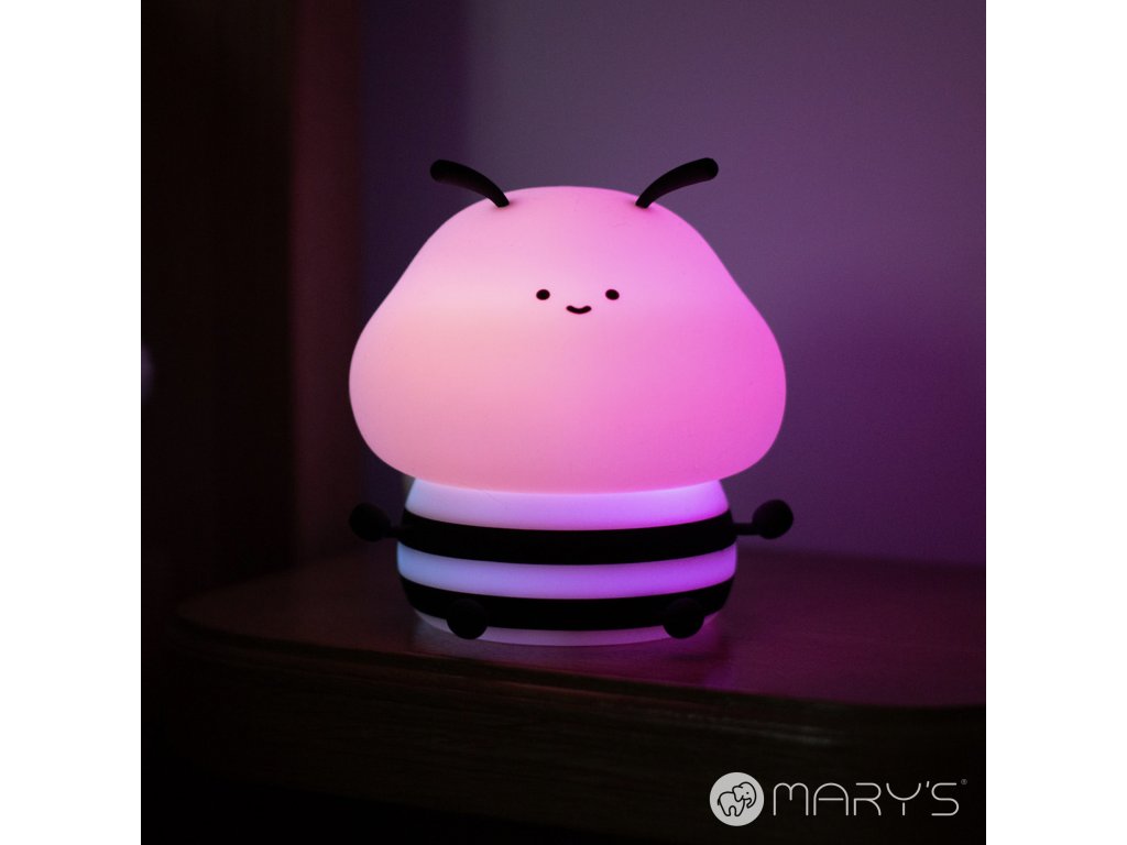 Mary's Noční LED lampička RGB - včelkaRoztomilá noční lampička ve tvaru včelky je ideální do dětského pokoje, ložnice nebo jako jemné dekorativní osvětlení. Vydává teplé světlo a barevné RGB efekty, které vytvářejí útulnou atmosféru v každou denní dobu. Vestavěná baterie a nabíjení přes USB-C kabel zajišťují pohodlné bezdrátové používání.Vlastnosti a výhody:Tvar a design: Roztomilý tvar včelky dělá z této lampičky opravdový magnet pro oči. Díky svému jemnému, přátelskému vzhledu se perfektně hodí do každého dětského pokoje nebo jako osvětlení pro příjemnou atmosféru do jiných místností.Všestranné osvětlení: Teplá barva světla vytváří uklidňující atmosféru, ideální pro usínání nebo relaxaci po dlouhém dni.Dlouhá životnost: Užijte si 8 až 200 hodin osvětlení v závislosti na zvolené intenzitě světla. Ideální pro každodenní použití bez nutnosti častého dobíjení.Rychlé a snadné nabíjení: Pomocí přiloženého kabelu USB-C můžete lampu rychle nabít pomocí notebooku, powerbanky nebo síťového adaptéru.Bezpečnost a snadné použití: Vyrobeno z pevných, bezpečných materiálů. Lampa je lehká, kompaktní a díky měkkému silikonovému povrchu bezpečná pro malé dětské ručky.Světlo:Barva / jas: nastavitelnéChromatičnost: Teplá bílá 3000 K + RGB (variabilní barvy)Zdroj světla:Zdroj světla: integrovaný LED (nevyměnitelný)Patice (objímka): zdroj světla je integrovanýOvládání: dotykové / tlačítkovéSvětelné efekty a senzory: Nastavení barvy světla (RGB)Typ: LED noční lampičkaVhodné využití: dětský pokoj, obývací pokoj, v domácnostiDoplňkové parametry