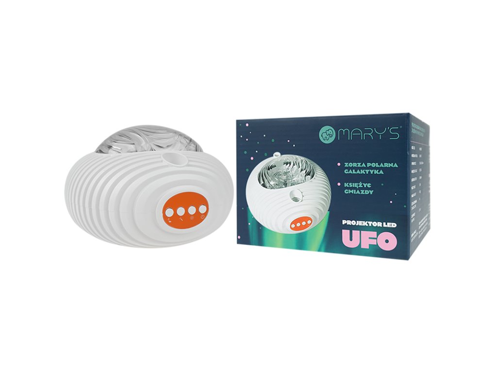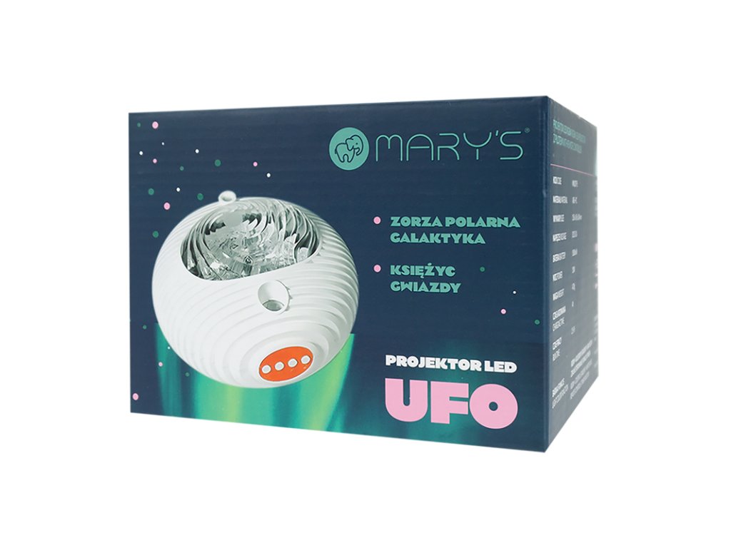 Mary's Projektor RGBW s dálkovým ovladačem - ufoUFO galaxie projektor je produkt, který je těžké popsat slovy. Efekty, které tento přístroj vytváří, jsou prostě fenomenální a okouzlující. Nebe plné hvězd s nádherným měsícem nebo polární záře, která září v různých barvách, zajišťují fascinující a hluboké sny. Další výhodou je hudba, při které hvězdy blikají v rytmu a polární záře se pohybuje.Projektor se velmi snadno ovládá a je dodáván s dálkovým ovladačem, pomocí kterého jej můžete ovládat z jakéhokoli místa v místnosti. Jedná se o lehké a bezdrátové zařízení, což je velká výhoda. Tento projektor bezpochyby poskytne celé rodině nezapomenutelné zážitky.Vlastnosti a výhody:RGBW kosmos projekce: Projektor nabízí řadu světelných efektů s možností promítání modrých, zelených, červených a bílých vzorů, které společně vytvářejí jedinečný galaktický efekt.Dálkové ovládání: Snadné ovládání projekčních funkcí z jakéhokoli místa v místnosti pomocí přiloženého dálkového ovladače.Vysoký výkon 10 W: Zajišťuje silné světlo, ideální pro domácí i profesionální použití.Regulace jasu: Intenzitu světla lze přizpůsobit podle preferencí uživatele, což zajišťuje zážitek na míru.Velká kapacita baterie 1800 mAh: Poskytuje dlouhou dobu používání bez nutnosti neustálého připojování projektoru, což je ideální pro mobilní použití na různých místech.Pevná konstrukce z materiálu ABS+PC: Odolná proti mechanickému poškození a trvanlivá, což zaručuje dlouhodobou kvalitu používání.Světlo:Barva / jas: nastavitelnéChromatičnost: RGBW (variabilní barvy)Zdroj světla:Zdroj světla: integrovaný LED (nevyměnitelný)Patice (objímka): zdroj světla je integrovanýOvládání: dálkové ovládáníSvětelné efekty a senzory: Nastavení barvy světla (RGB), Projekce (režimy): ● Polární záře / Galaxie ●Plynulý přechod barev ● Melodie ● Měsíc / hvězdy ● Rotace galaxie / polární zářeTyp: projektorVhodné využití: dětský pokoj, obývací pokoj, ložniceDoplňkové parametry