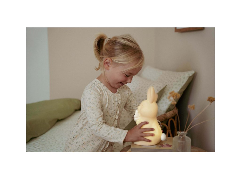 Noční lampička v podobě roztomilého králíčka je ideální pro klidné usínání vašeho dítěte. Lampička s jemným LED světlem funguje s bateriemi a je tak snadno přenosná. Její ovládání je velmi jednoduché, stačí ji jen zapnout. Pro úsporu baterií se světlo po 12 minutách automaticky vypne. Lampička je součástí designové kolekce hraček a doplňků Little Dutch Fairy Garden inspirované životem na zahradě. Baterie 3x LR44 1,5 V jsou součástí. Rozměry: 21 x 11,5 x 13,5 cmDoplňkové parametry