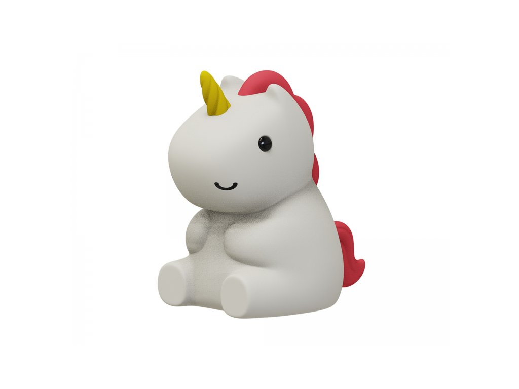 Noční světlo MegaLight Maggy Magic v podobě roztomilého jednorožce poskytne vašemu dítěti pocit bezpečí a pomůže mu tak zajistit klidný spánek. Díky svému designu bude i krásnou dekorací v dětském pokoji. LED světlo s nabíjecí baterií na výběr teplé bílé světlo a 7 RGB barev regulace intenzity světla časovač pro možnost vypnutí po 20, 40 nebo 60 minutách snadné ovládání dotykem životnost baterie až 200 hodin při ztlumeném režimu, 5 hodin při maximálním jasu nabíjení s pomocí přiloženého USB-C kabelu testováno v souladu se směrnicemi o hračkách Složení: polykarbonát, silikon Rozměry: 83 x 112 x 132mm Vhodné pro děti od 18 měsíců.Doplňkové parametry