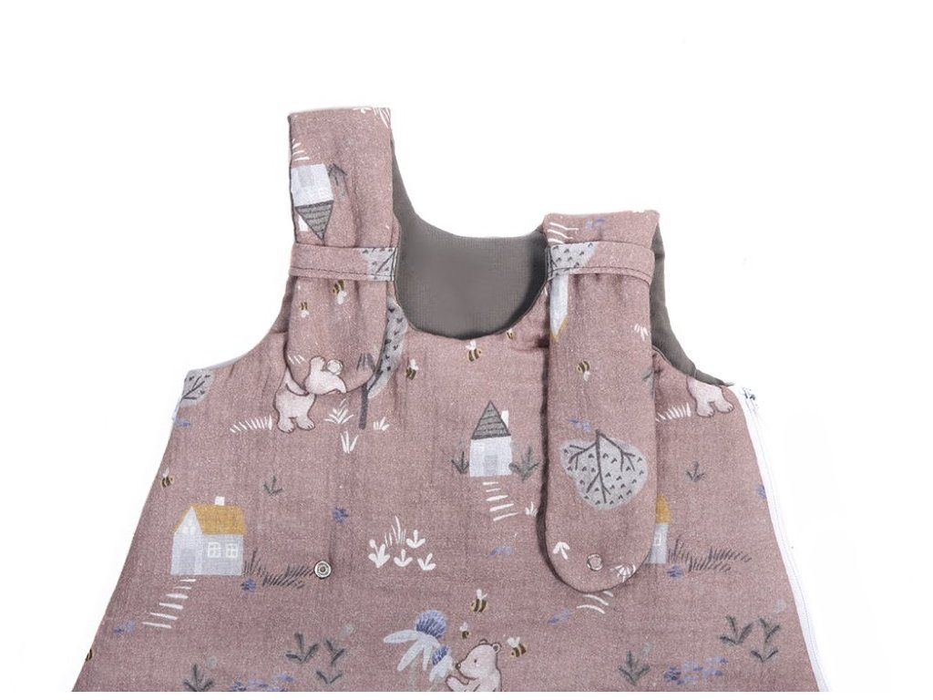 Rostoucí spací pytel, který roste s Vaším děťátkem. Spací pytel je ručně šitý z té nejvyšší kvality. Materiál je prodyšný a pomáhá udržet stálou přirozenou teplotu dítěte. Díky tomu se nebude při spánku přehřívat, ani mu nebude chladno. Použitý materiál je jemný mušelín, nejvhodnější materiál pro malé miminka. Mušelín je organická bavlna, která je dobře využitelná v teplejších dnech. Jedná se o nejčistší, nejšetrnější a jednu z nejdokonalejších tkanin na světě. Je výjimečná především svou prodyšností. Otevřená vazba tkaní a lehká struktura umožňuje mušelínu dýchat a zajišťuje dostatečnou cirkulaci vzduchu, čímž snižuje riziko přehřátí. Díky jedinečným vlastnostem pomáhá udržet Vaše dítě v pohodlí, bezpečí a Vás v klidu. Spací pytel můžete využít po celý rok.