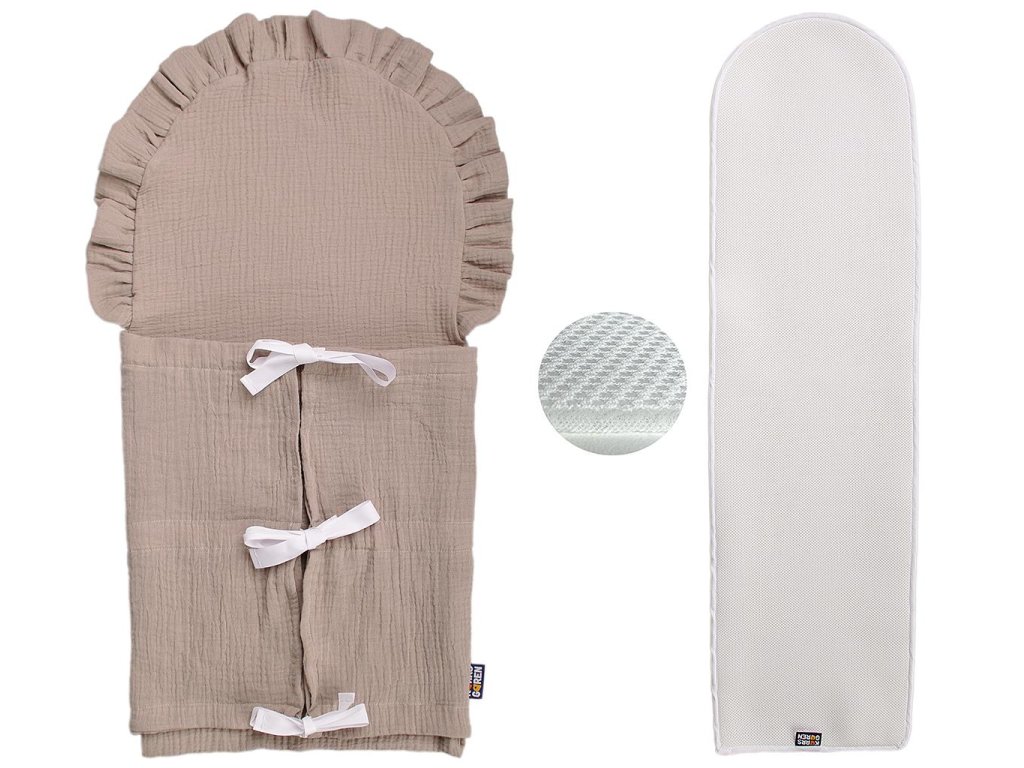 Letní sada potah klasické zavinovačky s trojitým vázáním v béžové barvě z mušelínu a letní výplň 3D do zavinovačky. Povlak zavinovačky je ze 100% bavlny a lze ho prát v pračce na 30 °C, velikost povlaku a tedy i zavinovačky je cca 115 x 33 cm. Složení materiálu vložky (výplně) zavinovačky: 100% polyester 3D. Výplň lze prát v pračce na 30 °C, má rozměr cca 110 x 33 cm. Zavinovačka je vhodná jako výbava do porodnice, protože novorozená miminka jsou zvyklá na těsný prostor maminčina bříška a po zavinutí se cítí bezpečně a rychle se zklidní.Doplňkové parametry