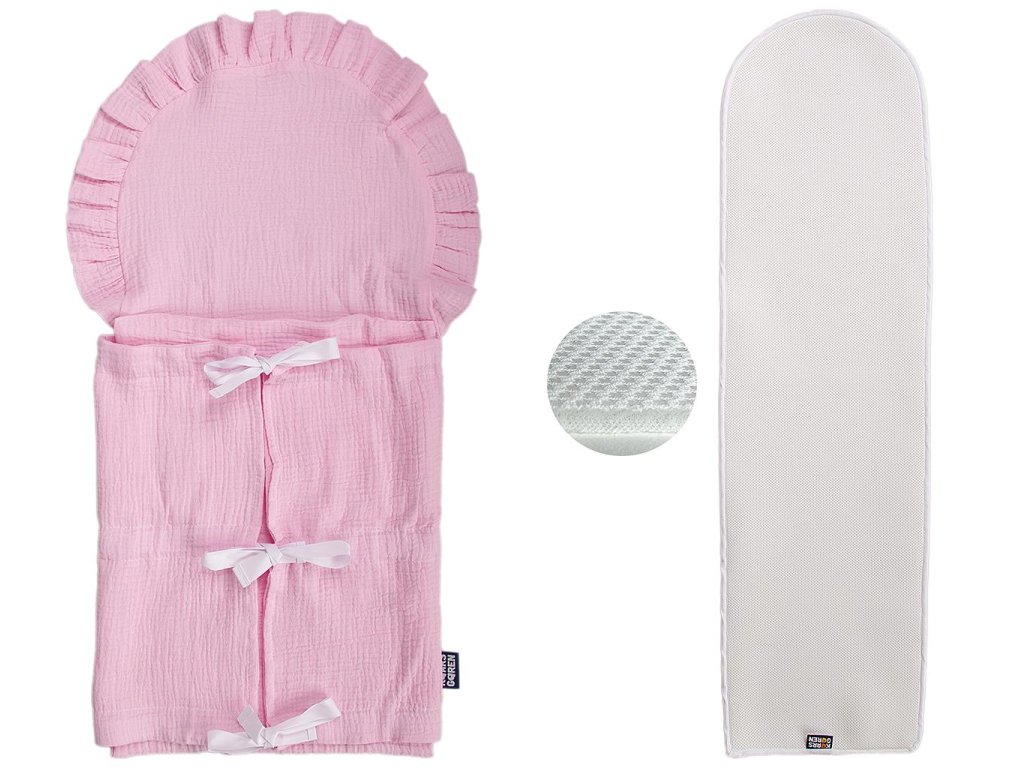 Letní sada potah klasické zavinovačky s trojitým vázáním v růžové barvě z mušelínu a letní výplň 3D do zavinovačky. Povlak zavinovačky je ze 100% bavlny a lze ho prát v pračce na 30° C, velikost povlaku a tedy i zavinovačky je cca 115 x 33 cm. Složení materiálu vložky (výplně) zavinovačky: 100% polyester 3D. Výplň lze prát v pračce na 30° C, má rozměr cca 110 x 33 cm. Zavinovačka je vhodná jako výbava do porodnice, protože novorozená miminka jsou zvyklá na těsný prostor maminčina bříška a po zavinutí se cítí bezpečně a rychle se zklidní.Doplňkové parametry