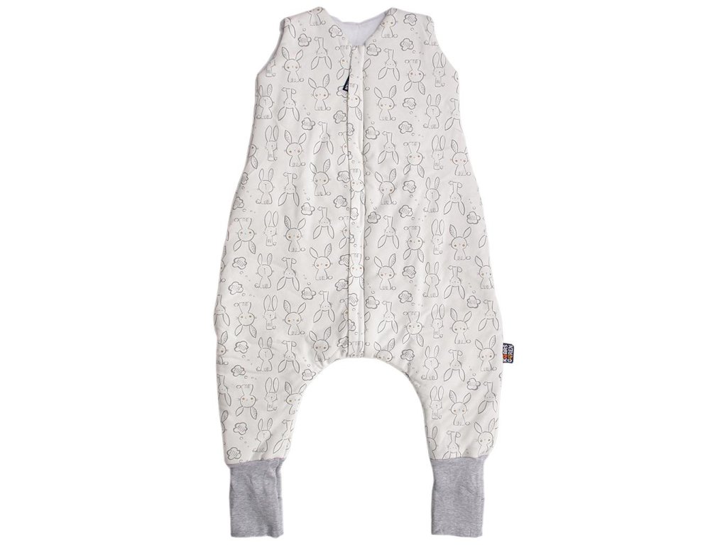 Dětský spací pytel s otvory pro nohy ve smetanové barvě a s motivem zajíčků, dítě v něm může volně kopat nožičkami. Délka spacího pytle je cca 90 cm, to je výška dítěte k ramenům. Lze jej prát v pračce při 30 °C. Spací pytel má uprostřed zip a lze jej zcela otevřít v obou směrech, navíc má zip látkovou krytku, která zabraňuje přiskřípnutí krku do zipu. Náplety na nožičkách lze překlopit a otvory uzavřít, takže nožičky zůstanou v teple. Spací pytel je ušitý ze tří vrstev: vrchní materiál 100% bavlna, výplň 100% polyester, podšívka 100% bavlna. Česká výroba. Tog 2,61.Doplňkové parametry