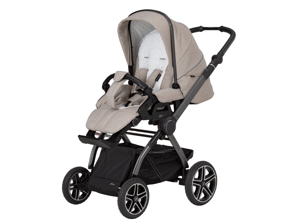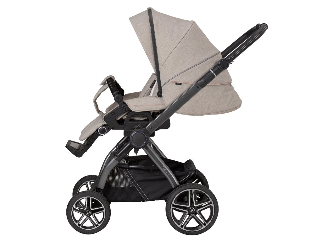 Topline 2.0 GTS Brake Trigon-FelgeKočárek Topline 2.0 GTS Brake je moderní sportovní kočárek s přehazovací rukojetí a ruční brzdou. Optimální jízdní vlastnosti na jakémkoli podkladu zajišťují odpružená, extra velká přední kola. Jsou natáčecí a zvládnou tak jakoukoli „překážkovou dráhu“ ve městě. Pokud je pevně zaaretujete, bezpečně udrží stopu i na výletě v přírodě. Kočárek Topline 2.0 GTS Brake nabízí také ideální funkční design. Sportovní sedačka GTS je nastavitelná do několika poloh vč. polohy zcela vleže. Opěrka nohou je výškově nastavitelná a výsuvná. Bezpečnost vašeho dítěte zajistí 5bodový bezpečnostní pás. Varianty vhodných tašek na dítě:Hluboká korba na dítě Falt - klasická hloubka, madlo, možnost složení - rozměry (D x Š x V): 80 x 34 x 22 cm- hmotnost: 5,1 kgKombi vložná taška - lehká, skládací, popruhy k přenášení- rozměry (D x Š x V): 80 x 32 x 22 cm- hmotnost: 2,6 kg Volitelné vybavení k dokoupení:Click adaptér pro autosedačky sk. 0 Vlastnosti:- přehazovací rukojeť- sportovní kočárek s funkčním designem- ruční brzda- odpružená, extra velká přední kola- otočná aretovací přední kola- přehazovací rukojeť- výškově nastavitelná a výsuvná opěrka nohou- vícepolohová opěrka zad s možností polohy zcela vleže- kompaktní skládací velikost- vč. nákupního košíku do 5 kg- vč. pláštěnkyPodvozek: rozměr při složení (D x Š x V): 75 x 58,5 x 37,5 cmHmotnost: 10,8 kg Nástavba: rozměr při složení (D x Šx V): 78 x 40 x 24 cmHmotnost: 4,9 kg Rozměry zkompletovaného kočárku (D x Š x V): 103 x 58,5 x 115 cmDoplňkové parametry