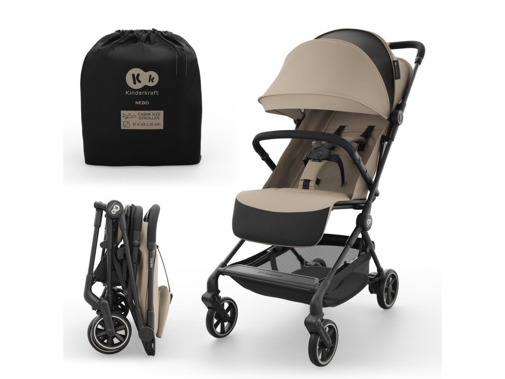 Kinderkraft NEBO je kompaktní sportovní kočárek typu cabin, vytvořený pro cestující rodiny, které rády sbírají společné zážitky a potřebují maximální mobilitu bez kompromisů v oblasti pohodlí a bezpečnosti. Díky lehké konstrukci a promyšleným řešením je NEBO ideální na letiště, do letadla i pro každodenní procházky městem. Mechanismus skládání jednou rukou umožňuje rychlé složení kočárku i v dynamických situacích. Po složení kočárek samostatně stojí a jeho rozměry (51 × 43 × 21 cm) odpovídají standardům příručního zavazadla, což výrazně zvyšuje komfort cestování. Nastavitelné opěradlo a opěrka nohou umožňují zcela ležící polohu, která dítěti zajišťuje pohodlný spánek. Pětibodové bezpečnostní pásy zajišťují stabilitu a ochranu dítěte a rodičům přinášejí klid. Klíčové vlastnosti a výhody: - Sportovní kočárek typu cabin – v souladu s rozměry příručního zavazadla - Skládání jednou rukou a samostatně stojící konstrukce - Ultralehká konstrukce - Ramenní popruh a transportní taška v balení - Nastavitelné opěradlo a opěrka nohou (ležící poloha) - Pětibodové bezpečnostní pásy - Košík pod sedadlem a kapsa u stříšky - Voděodolná stříška s UPF50+ Technické parametry: - Maximální zatížení: do 22 kg - Hmotnost výrobku: 5,9 kg - Čistá hmotnost: 5,7 kg - Rozměry po složení: 51 × 43 × 21 cm - Rám: hliník - Kola: EVA (přední 5”, zadní 6”) - Pásy: pětibodové - Příslušenství: transportní taška, ramenní popruh UPOZORNĚNÍ! Tento výrobek není vhodný pro běhání nebo jízdu na bruslích. Výrobek je určen pro děti do 22 kg nebo do 4 let, podle toho, co nastane dříve. Adresa dodavatele: Supl4kraft sp. z o.o. ul. Tatrzanska 1/5, 60–413 Poznan, Poland support@kinderkraft.com www.kinderkraft.comDoplňkové parametry
