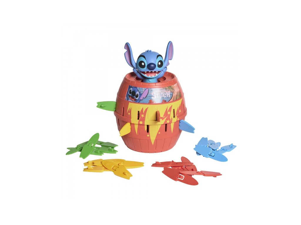 TOMY - Stitch - Společenská hra Vyskakovací StitchZábava pro celou rodinu! Připravte se na nečekané překvapení s roztomilým mimozemšťanem Stitchem!Přivítejte tropickou herní zábavu přímo u vás doma!Řekněte "Aloha" společenské hře Vyskakovací Stitch, která přináší jedinečnou kombinaci napětí, smíchu a rodinné pohody. Tato hra je inspirována oblíbenou postavičkou z Disneyho příběhu Lilo & Stitch a slibuje, že se stane hitem každého herního večera – ať už s dětmi, přáteli, nebo celou rodinou.Jak hra funguje?Určitě se mohou zapojit všichni rodinní příslušníci. Aby byla hra při rozbalení kompletní, opatrně přilepte přiložené nálepky na určená místa. Stitche umístěte na sud a přitiskněte dolů do sudu. Pokaždé bude vykukovat jinak. V této hře se surfovací prkénka zabodávají do sudu. Každý hráč si zvolí svou oblíbenou barvu prkénka a bude doufat, že právě jemu Stitch nevyskočí. Musíte být ale opatrní, stačí jeden chybný krok a Stitch vyletí ven ze sudu!Proč si zamilujete Vyskakovacího Stitche?- Jednoduchá pravidla, okamžitá zábava.Hru se naučí během chvilky i ti nejmenší členové rodiny. Stačí vložit surfovací prkénka a čekat, co se stane!- Napětí a smích v každém kole.Nikdo neví, kdy Stitch vyskočí – a právě to dělá hru tak zábavnou. Připravte se na salvy smíchu a překvapené výrazy!- Ideální pro rodinné večery.Ohana znamená rodina, a tato hra je perfektní volbou pro společné chvíle s vašimi blízkými. Užijte si čas spolu a vytvořte si vzpomínky, na které budete rádi vzpomínat.- Pro všechny věkové kategorie.Hra je vhodná pro děti od 4 let, ale pobaví i dospělé. Díky jednoduchému principu se do hry zapojí opravdu každý.- Kompaktní a snadno přenosná.S rozměry 21,3 x 15 x 26,5 cm je hra ideální na cesty, víkendové pobyty nebo návštěvy u přátel.Co najdete v balení?- 1x figurka Stitche- 1x sud- 24x surfovacích prkének Bezpečnostní pokyny Varování: Hračka není určena pro děti do 3 let, obsahuje malé části. Nebezpečí spolknutí a udušení.Před předáním dítěti odstraňte veškeré obaly a úchytky.Doporučeno používat pod dozorem dospělé osoby.Zkontrolujte, zda produkt nemá ostré hrany nebo praskliny, které by mohly dítě zranit.Doplňkové parametry