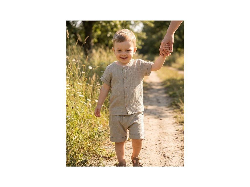 Stylová 2-dílná mušelínová soupravička české značky New Baby pro miminka. Soupravička obsahuje košili a kraťasy. Košile s krátkým rukávem má zapínání na knoflíčky. Šmrncovní kraťásky mají v pase širší gumičku a falešné zapínání na knoflíčky. Krásný, vzdušní komplet na letní dny pro chlapečky. Soupravička je lehounká a velmi příjemná při nošení. Mušelín je jedna z nejčistších, nejjednodušších a nejjemnějších tkanin na světě. Jemně tkaný prodyšný materiál je tak dokonalý, že si jej zamilují děti po celém světě. Lehká struktura umožňuje mušelínu „dýchat“ a zajišťuje dostatečnou cirkulaci vzduchu, čímž snižuje riziko přehřátí. Tato vlastnost pomáhá udržet Vaše dítě v pohodlí, bezpečí a rodiče v klidu. Mušelín je velmi odolný a to tak, že bez problémů zvládá opakované praní a postupem času je lehčí a jemnější. Složení: 100% bavlna. OEKO-TEX STANDARD 100.Doplňkové parametry