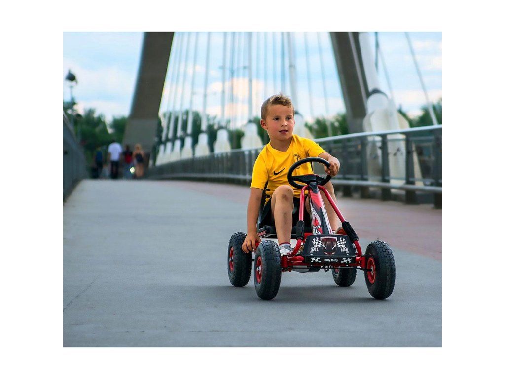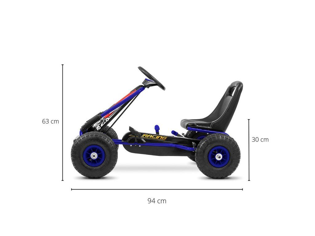 Velká sportovní šlapací motokára Thor byla navržena pro řidiče a fanoušky rychlé jízdy. Konstrukce z lehkého kovu s plastovými kryty ve sportovním stylu dodá každému malému řidiči šmrnc. Pohodlí zajišťuje sportovně tvarované sedadlo s nastavitelnou vzdáleností od volantu. Velké nafukovací pneumatiky zajistí komfort a pohodlí při jízdě na jakémkoli povrchu. Motokára má zabudovaný řetězový pohon s možností odpojení pohonu -funkce "volnoběžky" a ruční brzdu na zadní nápravě. Šlapadlo se vyznačuje sportovním designem a vysokou kvalitou zpracování. CHARAKTERISTIKA: - Sedadlo s nastavením vzdálenosti od volantu ve 2 stupních - Robustní konstrukce - Ruční brzda na obou zadních kolech - Převodovka se dvěma nastaveními: vpřed/vzad a volnoběžka - Pouzdro řetězu - Velká nafukovací kola s ložisky - Sportovní volant - Plastové chrániče - Věkové rozmezí 3-8 let - Splňuje evropské bezpečnostní normy TECHNICKÉ ÚDAJE: Délka 94 cm Výška 63 cm Šířka 61 Opěradlo 29 cm Sedadlo 29 x 20 cm Výška od sedadla k zemi 30 cm Vzdálenost od sedadla k pedálu (blíže k sedadlu) 18 - 30 cm Vzdálenost mezi sedadlem a pedálem (sedadlo více vzadu) 22 - 34 cm Průměr kola přibližně 26 cm Šířka kola 7,5 cm Průměr volantu 21 cm Maximální zatížení až 30 kg Hmotnost 11,7 kg ROZMĚRY BALENÍ: Výška 25 cm Šířka 62 cm Délka 95 cm Hmotnost s obalem 13,5 kgDoplňkové parametry