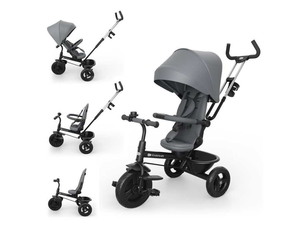 KINDERKRAFT Tříkolka Aston 2 Plus Grey, 9m+