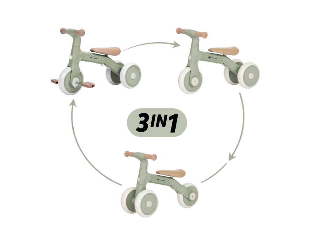 PETITE&MARS Tříkolka multifunkční 3v1 Bingo Sage Leaf