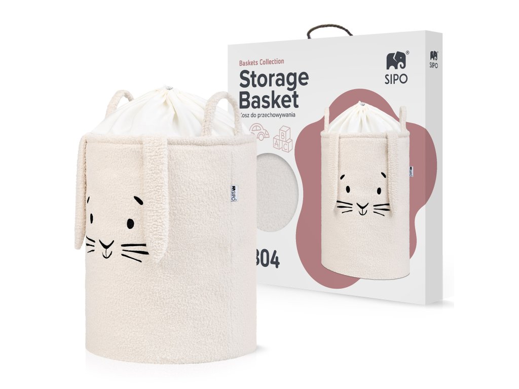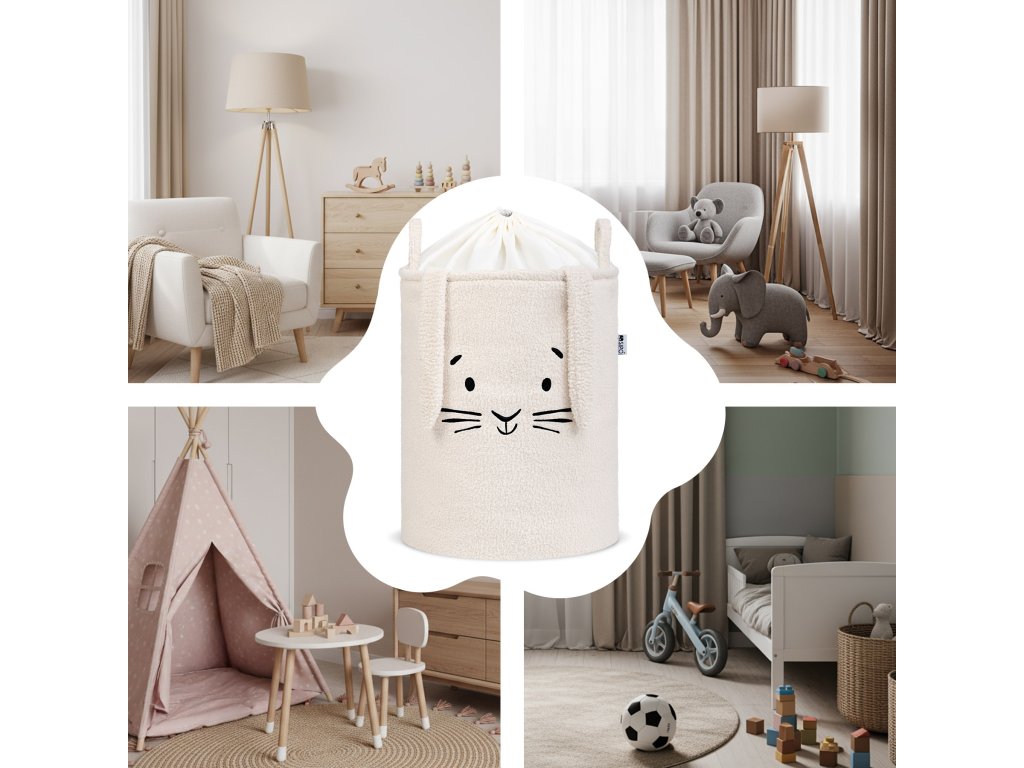 Sipo Koš na hračky Premium Bouclé se šňůrkou / 43 l, Rabbit (Cream)