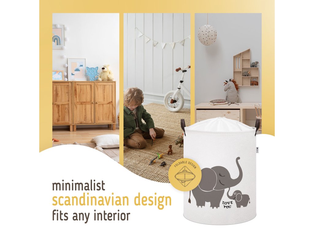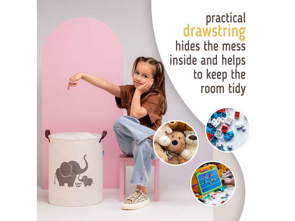 Sipo Koš na hračky se šňůrkou, skládací bavlněný / 43 l, Elephants