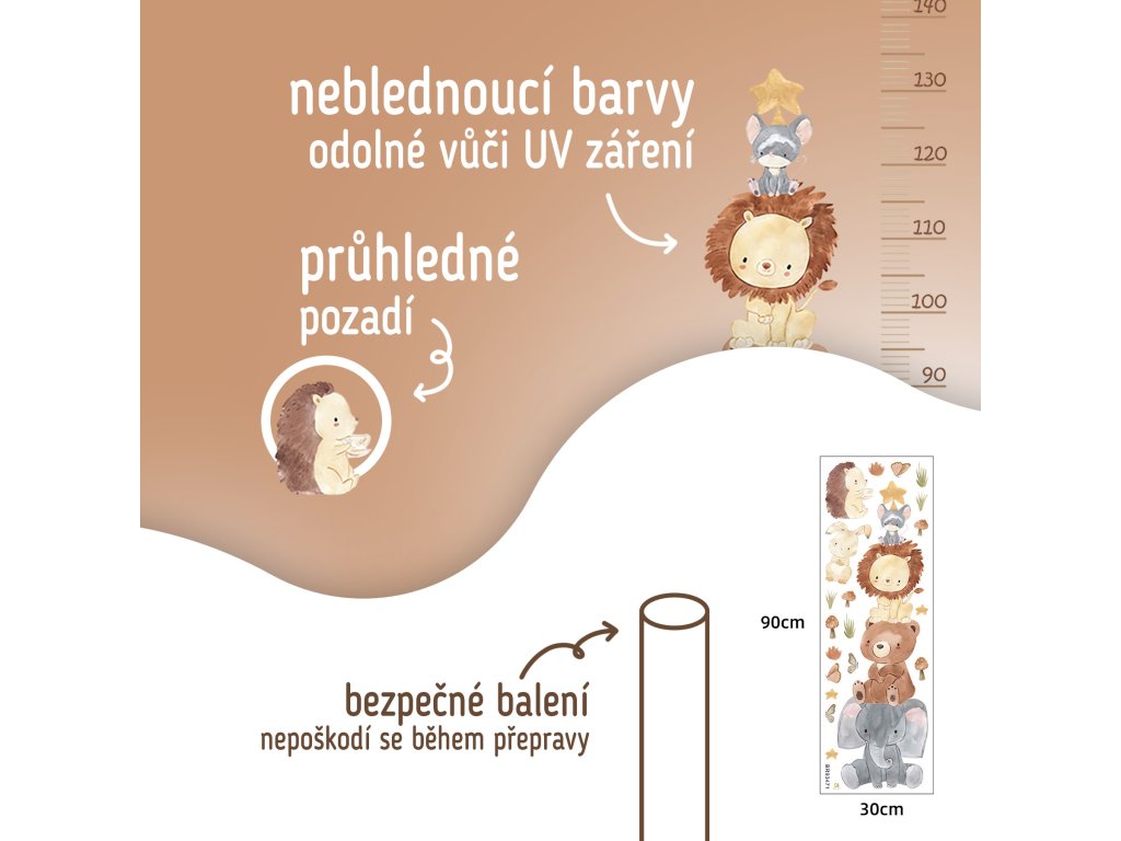 Sipo Nástěnné samolepky do dětského pokojePOPIS PRODUKTU:SIPO samolepky na zeď jsou krásným dekorativním prvkem, který vám umožní rychle a snadno proměnit vzhled dětského pokojíčku. Samolepky jsou vyrobeny z vysoce kvalitní samolepicí fólie, odolné proti UV záření, takže barvy zůstávají dlouho zářivé. Povrch samolepky je matný, což eliminuje nežádoucí odrazy světla a zvyšuje estetiku designu. Instalace nevyžaduje žádné další nástroje ani lepidlo – stačí prvek odlepit z podkladu a nalepit na vybraný hladký povrch. Samolepky lze uspořádat v libovolné konfiguraci, což vám umožní vytvořit si své osobní kompozice. Všechny samolepky obsažené v sadě jsou umístěny na jednom listu a každý prvek je přesně vyříznut, díky tomu můžete snadno plánovat rozložení dekorace a přizpůsobit ji jak malým, tak větším prostorům. Pozadí samolepek je jemně průsvitné, vzory se tak přirozeně prolínají s povrchem stěny, bez ohledu na její barvu. To vše vám umožňuje vytvářet kompozice, které dokonale vyhovují potřebám interiéru.Produkt je bez zápachu a bezpečný pro děti.POUŽITÍ PRODUKTU:Samolepky na zeď jsou určeny k dekoraci dětských pokojů, jeslí, mateřských škol a dalších prostor pro děti. Jsou ideální na stěny, nábytek, sklo nebo dveře. Díky snadné instalaci a bezpečnému odstranění jsou perfektní jak pro domácí interiéry, tak pro veřejné prostory.HLAVNÍ VLASTNOSTI A VÝHODY:> Vysoce kvalitní, odolná samolepicí fólie> Matný povrch bez odlesků světla> Snadná aplikace – není potřeba lepidlo ani nářadí> Odolná proti UV záření – barvy zůstávají syté> Flexibilní uspořádání pro vlastní kompozice> Bez zápachu a bezpečná pro děti> Univerzální – vhodná na stěny, nábytek, sklo a dveře> Prvky jsou na archu uspořádány jako jednotlivé samolepky, což vám umožňuje umístit je do prostoru podle vlastního návrhu.> Díky jemně průsvitnému pozadí se samolepky harmonicky spojí s barvou stěny a vytvoří soudržnou dekoraci.> Praktická kartonová krabice zajišťuje bezpečné doručení a zároveň skvěle vypadá jako dárkové balení.NÁVOD K POUŽITÍ:Před aplikací se ujistěte, že povrch je čistý, hladký a suchý. Opatrně odlepte samolepku z archu a umístěte ji na požadované místo. Vyhlaďte ji měkkým hadříkem, aby se odstranily vzduchové bubliny. U větších vzorů doporučujeme použít pomoc další osoby.BEZPEČNOST A ÚDRŽBA:Samolepky jsou určeny pouze pro hladké povrchy. Neaplikujte na čerstvě natřené stěny – počkejte alespoň 2 týdny. Tento výrobek není hračka a měl by být aplikován pouze dospělými osobami. Chcete-li nálepku odstranit, opatrně ji odlepte, aniž byste poškodili povrch.SPECIFIKACE:• Značka: SIPO• Materiál: samolepicí PVC fólie, matná, odolná proti UV záření• Rozměry archu (1): 90x30 [CM]• Rozměry archu (2): 60x30 [CM]• Rozměr na stěně: 100x80 [CM]OBSAH BALENÍ:• 1 × sada dekorativních samolepek na zeďCZ) DŮLEŽITÉ: PŘED POUŽITÍM SI POZORNĚ PŘEČTĚTE PŘILOŽENÉ INFORMACE K POUŽITÍ, ABYSTE SE VYHNULI MOŽNÝM NEBEZPEČÍM PŘI POUŽÍVÁNÍ VÝROBKU A USCHOVEJTE JE PRO PŘÍPADNÉ DALŠÍ POUŽITÍ.UPOZORNĚNÍ: PŘED POUŽITÍM ODSTRAŇTE A ZLIKVIDUJTE PŘÍPADNÉ PLASTOVÉ SÁČKY A VŠECHNY ČÁSTI OBALU TOHOTO VÝROBKU NEBO JE ALESPOŇ UCHOVEJTE MIMO DOSAH DĚTÍ. DOPORUČUJEME TYTO ČÁSTI VYHODIT DO TŘÍDĚNÉHO ODPADU V SOULADU S PLATNÝMI VYHLÁŠKAMI A NAŘÍZENÍMI.Výrobce / výrobca: SIPO Sp. z o.o., ul. Gen. Mariana Langiewicza 18, 35-021 Rzeszów, POLAND, www.sipo.com.pl, t. +48 791 494 260, e. sipo@sipo.com.plDistributor pro / Distribútor pre CZ&SK: Bohemia Baby s.r.o., Lidická 481, 273 51 Unhošť, email: sales@bohemiababy.cz / www.bohemiababy.cz / www.b2b.bohemiababy.cz / www.bohemiababyshop.czDoplňkové parametry