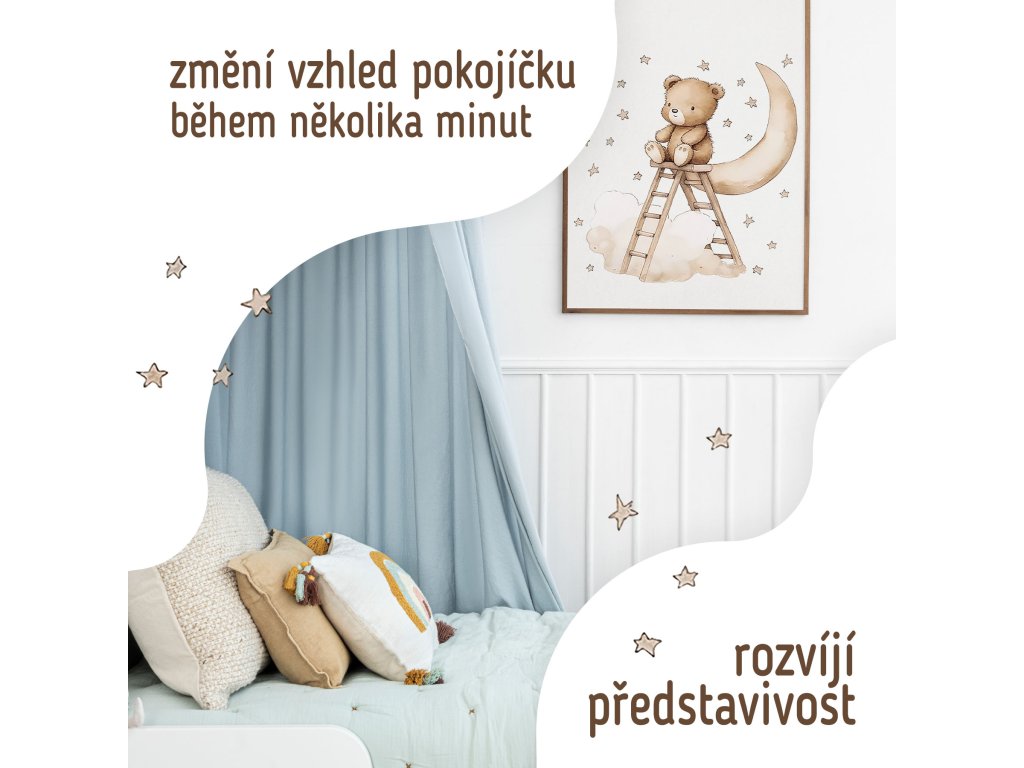 Sipo Nástěnné samolepky do dětského pokojePOPIS PRODUKTU:SIPO samolepky na zeď jsou krásným dekorativním prvkem, který vám umožní rychle a snadno proměnit vzhled dětského pokojíčku. Samolepky jsou vyrobeny z vysoce kvalitní samolepicí fólie, odolné proti UV záření, takže barvy zůstávají dlouho zářivé. Povrch samolepky je matný, což eliminuje nežádoucí odrazy světla a zvyšuje estetiku designu. Instalace nevyžaduje žádné další nástroje ani lepidlo – stačí prvek odlepit z podkladu a nalepit na vybraný hladký povrch. Samolepky lze uspořádat v libovolné konfiguraci, což vám umožní vytvořit si své osobní kompozice. Všechny samolepky obsažené v sadě jsou umístěny na jednom listu a každý prvek je přesně vyříznut, díky tomu můžete snadno plánovat rozložení dekorace a přizpůsobit ji jak malým, tak větším prostorům. Pozadí samolepek je jemně průsvitné, vzory se tak přirozeně prolínají s povrchem stěny, bez ohledu na její barvu. To vše vám umožňuje vytvářet kompozice, které dokonale vyhovují potřebám interiéru.Produkt je bez zápachu a bezpečný pro děti.POUŽITÍ PRODUKTU:Samolepky na zeď jsou určeny k dekoraci dětských pokojů, jeslí, mateřských škol a dalších prostor pro děti. Jsou ideální na stěny, nábytek, sklo nebo dveře. Díky snadné instalaci a bezpečnému odstranění jsou perfektní jak pro domácí interiéry, tak pro veřejné prostory.HLAVNÍ VLASTNOSTI A VÝHODY:> Vysoce kvalitní, odolná samolepicí fólie> Matný povrch bez odlesků světla> Snadná aplikace – není potřeba lepidlo ani nářadí> Odolná proti UV záření – barvy zůstávají syté> Flexibilní uspořádání pro vlastní kompozice> Bez zápachu a bezpečná pro děti> Univerzální – vhodná na stěny, nábytek, sklo a dveře> Prvky jsou na archu uspořádány jako jednotlivé samolepky, což vám umožňuje umístit je do prostoru podle vlastního návrhu.> Díky jemně průsvitnému pozadí se samolepky harmonicky spojí s barvou stěny a vytvoří soudržnou dekoraci.> Praktická kartonová krabice zajišťuje bezpečné doručení a zároveň skvěle vypadá jako dárkové balení.NÁVOD K POUŽITÍ:Před aplikací se ujistěte, že povrch je čistý, hladký a suchý. Opatrně odlepte samolepku z archu a umístěte ji na požadované místo. Vyhlaďte ji měkkým hadříkem, aby se odstranily vzduchové bubliny. U větších vzorů doporučujeme použít pomoc další osoby.BEZPEČNOST A ÚDRŽBA:Samolepky jsou určeny pouze pro hladké povrchy. Neaplikujte na čerstvě natřené stěny – počkejte alespoň 2 týdny. Tento výrobek není hračka a měl by být aplikován pouze dospělými osobami. Chcete-li nálepku odstranit, opatrně ji odlepte, aniž byste poškodili povrch.SPECIFIKACE:• Značka: SIPO• Materiál: samolepicí PVC fólie, matná, odolná proti UV záření• Rozměry archu (1): 90x30 [CM]• Rozměry archu (2): 60x30 [CM]• Rozměr na stěně: 100x80 [CM]OBSAH BALENÍ:• 1 × sada dekorativních samolepek na zeďCZ) DŮLEŽITÉ: PŘED POUŽITÍM SI POZORNĚ PŘEČTĚTE PŘILOŽENÉ INFORMACE K POUŽITÍ, ABYSTE SE VYHNULI MOŽNÝM NEBEZPEČÍM PŘI POUŽÍVÁNÍ VÝROBKU A USCHOVEJTE JE PRO PŘÍPADNÉ DALŠÍ POUŽITÍ.UPOZORNĚNÍ: PŘED POUŽITÍM ODSTRAŇTE A ZLIKVIDUJTE PŘÍPADNÉ PLASTOVÉ SÁČKY A VŠECHNY ČÁSTI OBALU TOHOTO VÝROBKU NEBO JE ALESPOŇ UCHOVEJTE MIMO DOSAH DĚTÍ. DOPORUČUJEME TYTO ČÁSTI VYHODIT DO TŘÍDĚNÉHO ODPADU V SOULADU S PLATNÝMI VYHLÁŠKAMI A NAŘÍZENÍMI.Výrobce / výrobca: SIPO Sp. z o.o., ul. Gen. Mariana Langiewicza 18, 35-021 Rzeszów, POLAND, www.sipo.com.pl, t. +48 791 494 260, e. sipo@sipo.com.plDistributor pro / Distribútor pre CZ&SK: Bohemia Baby s.r.o., Lidická 481, 273 51 Unhošť, email: sales@bohemiababy.cz / www.bohemiababy.cz / www.b2b.bohemiababy.cz / www.bohemiababyshop.czDoplňkové parametry