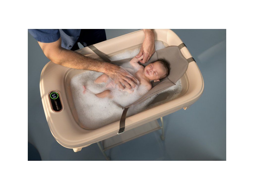 Skládací vanička Maxi-Cosi Indigo Plus je chytrá vanička, která zvládne koupání vašeho dítěte od narození až do 4 let. Vyniká komfortem pro novorozence, přesným hlídáním teploty a skladností – po koupání ji jednoduše složíte naplocho a uklidíte. Pro miminko i batole – bez dokupování dalších řešení Součástí vaničky je vyjímatelná novorozenecká vložka QuickDry, která miminko stabilně podpírá vleže. Jakmile dítě zvládne sedět, vložku jednoduše odejmete a vanička dál slouží jako prostorná vana pro batole. Teplota pod kontrolou Integrovaný teploměr HighSense měří teplotu u dna vaničky, kde bývá voda nejteplejší. Praktický je i barevný indikátor: modrá = studená červená = horká zelená = ideální 35–38 °C Stabilní a pohodlná Vanička má měkkou silikonovou podložku s protiskluzem, aby dítě během koupání neklouzalo. Stabilitu zajišťují protiskluzové prvky na nohách. Rychlé použití, rychlý úklid Indigo Plus má skládací konstrukci s výsuvnými nohami – připravená je během chvilky a po koupání ji snadno složíte. Vodu vypustíte přes velký výpustný otvor a vaničku můžete pověsit za integrovaný háček, aby rychle uschla. Hlavní výhody použití od narození do 4 let vyjímatelná novorozenecká vložka QuickDry integrovaný teploměr HighSense + barevný indikátor bezpečné teploty protiskluzová měkká podložka stabilní nohy s protiskluzem skládání naplocho pro snadné skladování velký výpustný otvor pro rychlé vypuštění vody integrovaný háček na zavěšení a sušení hladké materiály pro snadné čištění moderní design do koupelny Rozměry (d × š × v): 86 × 51 × 24 cm Vhodné pro děti od narození do 4 let.Doplňkové parametry