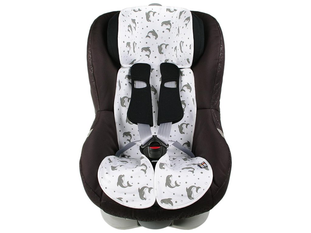 Univerzální vložka do dětské autosedačky velikosti 9 až 36 kg i 9 až 18 kg. Povrch je ze 100% bio-bavlny s motivem šedých delfínků, spodní strana je z 3D polyesteru, který zajistí proudění vzduchu. Praní na 30 °C. Vyrobené v České republice.Doplňkové parametry