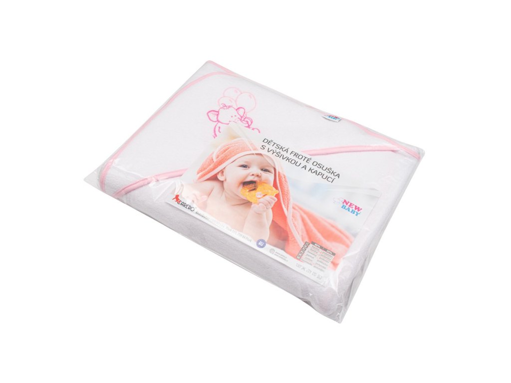 Krásná dětská froté osuška české značky New Baby je vyrobena z měkkého, kvalitního a velmi savého materiálu a proto je ideální pro miminka i starší děti. Osuška krásně zahřeje po koupeli a praktická kapucka chrání hlavičku děťátka před nepříjemným chladem. Osuška dokonale absorbuje vlhkost, přičemž velmi rychle schne. Zdobí ji veselý obrázek zvířátka. Kvalitní materiál, ze kterého je osuška vyrobena nepouští barvu a nevyvolává alergické reakce. Složení: 80% Bavlna, 20% polyesterRozměry: 100x100 cmDoplňkové parametry