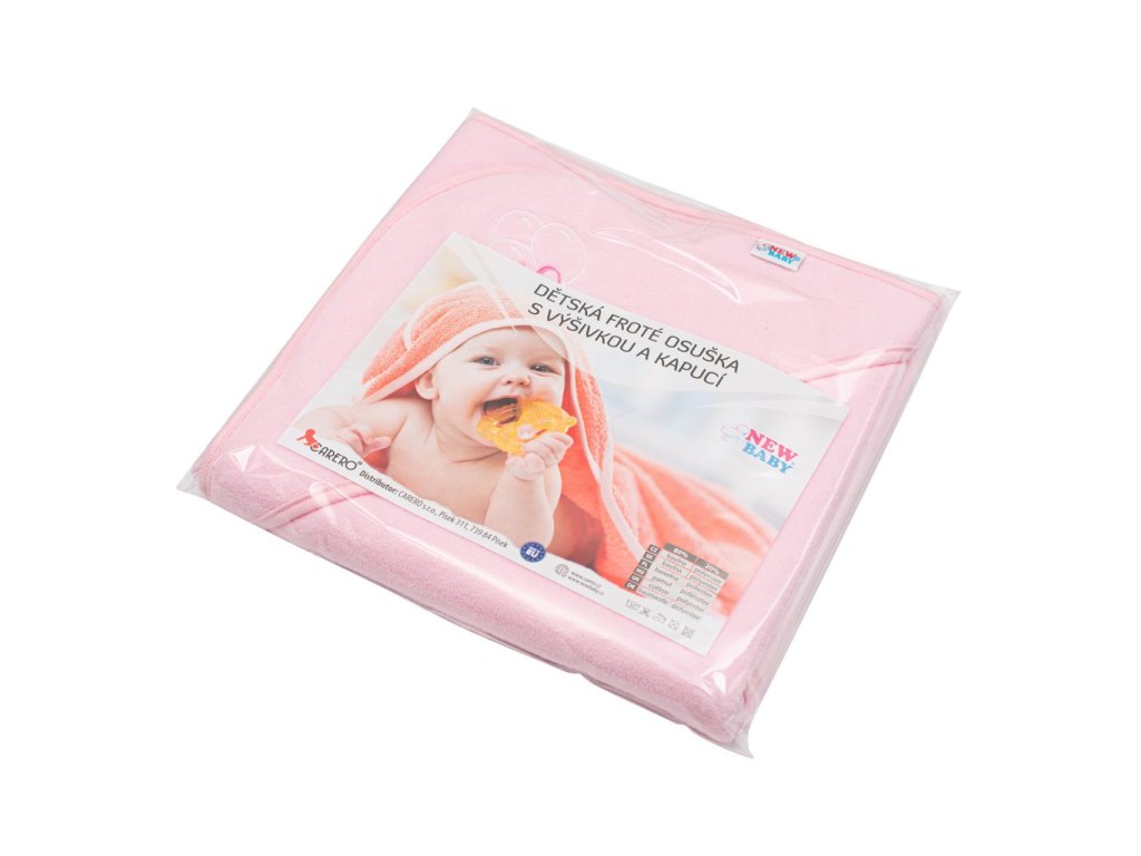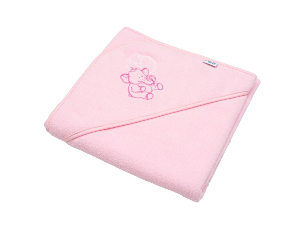 Dětská froté osuška s výšivkou a kapucí New Baby 80x80 růžová sloník
