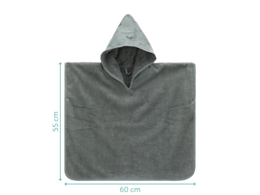 Dokonalý doplněk – pončo Fillikid Ať už u moře, u bazénu nebo po koupeli doma, Vaše děťátko bude vždy příjemně zabalené. Pončo je vyrobeno 100% bavlny zajišťuje vynikající savost a je mimořádně šetrné k citlivé dětské pokožce. Kapuce a roztomilý potisk na přední straně dodávají ponču jedinečný vzhled. Na bocích se nacházejí dva patentky, které zabraňují sklouzávání ponča a zároveň poskytují dítěti dostatek volnosti pohybu. Vlastnosti produktu: Pončo s roztomilým designem Materiál: 100 % bavlna Rozměry: 59 × 54 cm Velikost: 12–24 měsíců Patentky na bocích