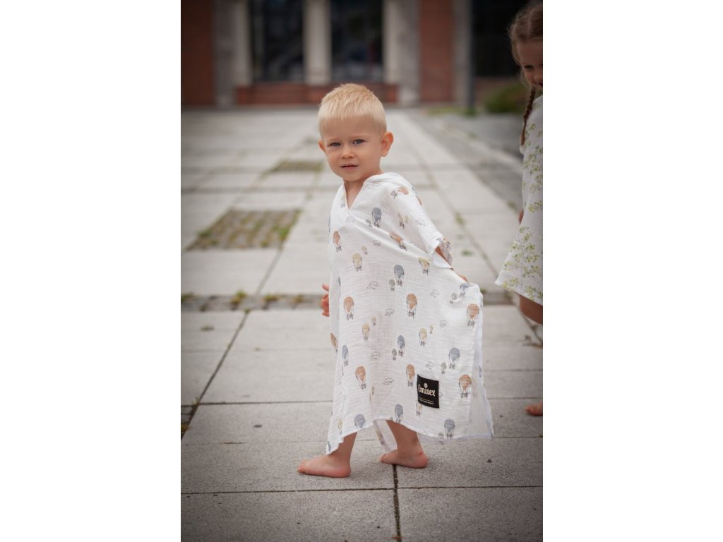 Lehké mušelínové pončo ušité z toho nejkvalitnějšího mušelínu. Naprosto nejlepší volba k vodě. Už žádný padající ručník nebo teplý župan!